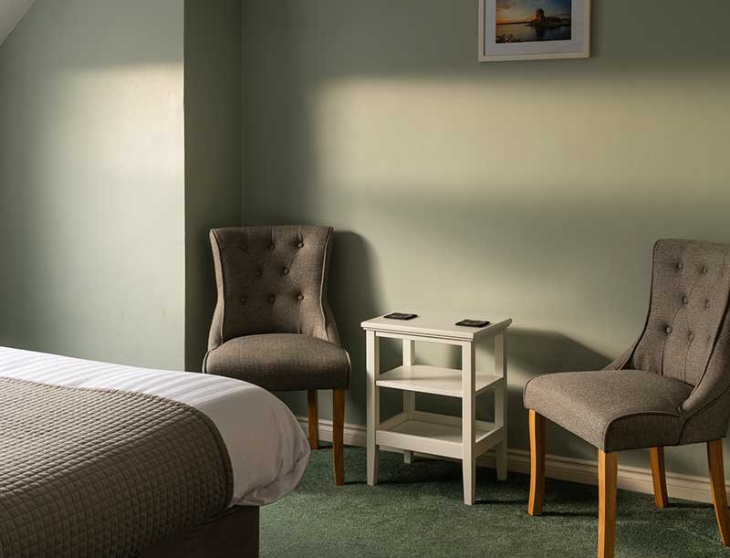 The Keenan Room is one of our most popular rooms. Situated on the first floor, a large Velux window in the sloping ceiling offers views over fields and Doolin towards the Cliffs of Moher. West facing, you can enjoy those wonderful sunsets from right here in your room.